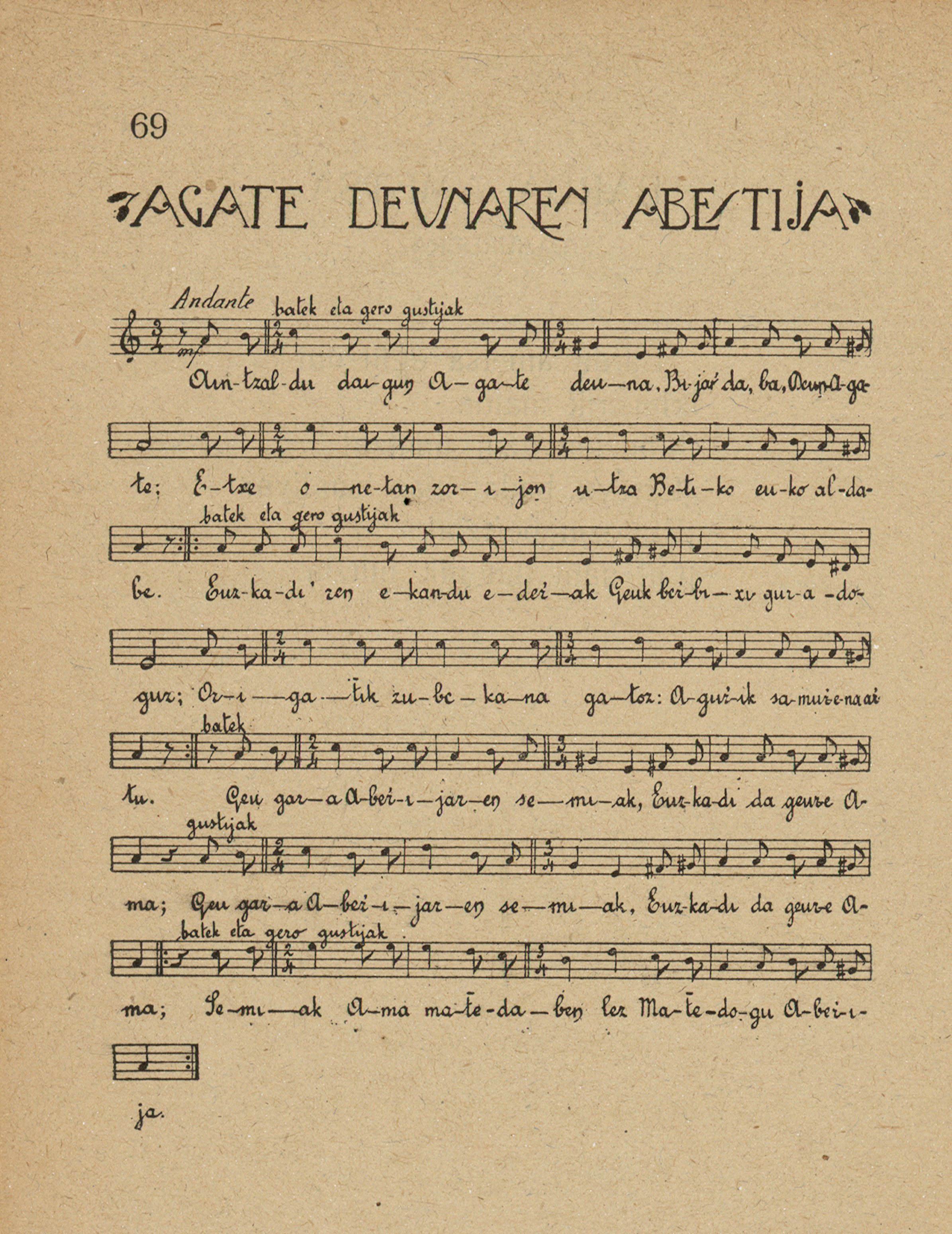 1. Aintzaldu daigun Agate deuna,