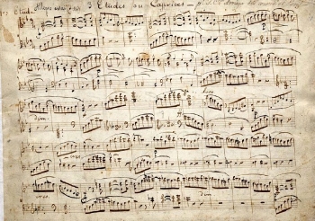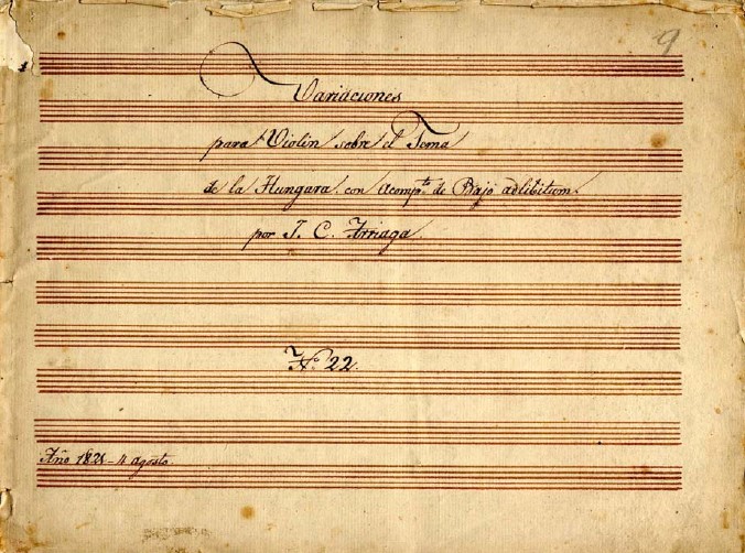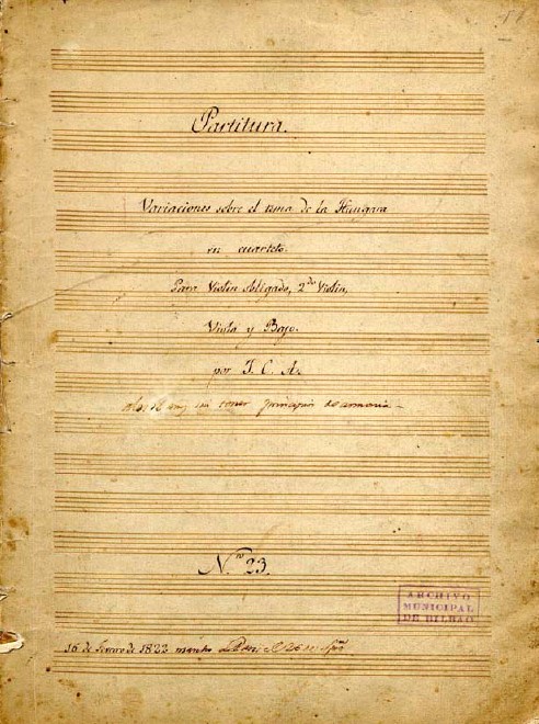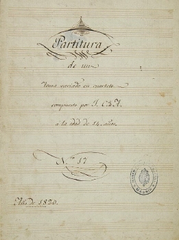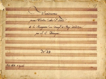 Partitura manuscrita con añadidos de otra mano [probablemente de Juan Simón de Arriaga]: «a los 16 años sin tener principios de armonía» ; «16 de fevrero de 1822 marchó a París el 26 de Spmre»
