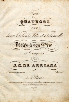 pour deux violons, alto et violoncelle, dédiés à son pére et composés par J. C. de Arriaga